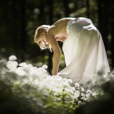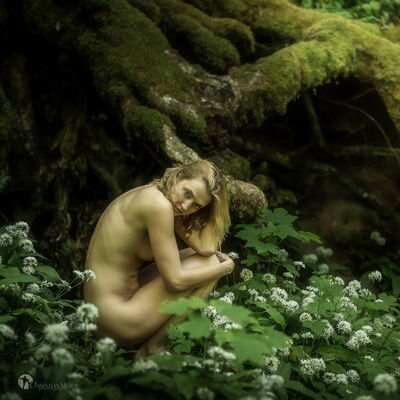 Zwischen tausenden zartweißen Bärlauchblüten entsteht eine Atmosphäre, die zugleich natürlich, sinnlich und voller Magie ist. Das Aktfotoshooting im Frühlingswald verbindet die sanfte Verletzlichkeit des Moments mit der kraftvollen Ruhe der Natur. Ein Spiel aus Licht, Haut und Blütenmeer – pur, ästhetisch und zeitlos..